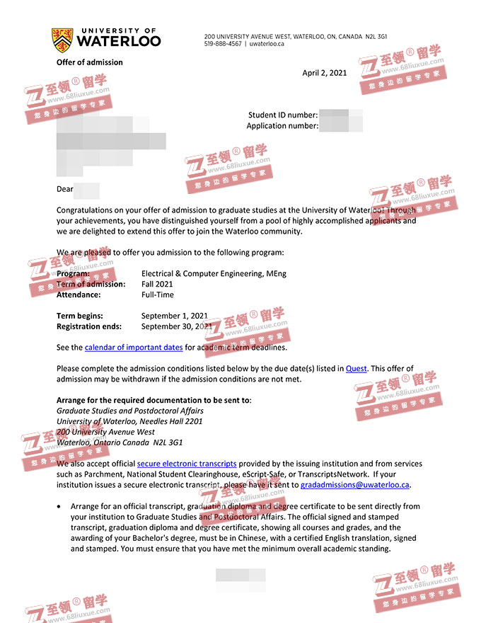 录取结果:University of Waterloo, Electrical & Computer Engineering MEng滑铁卢大学电子与计算机工程硕士录取