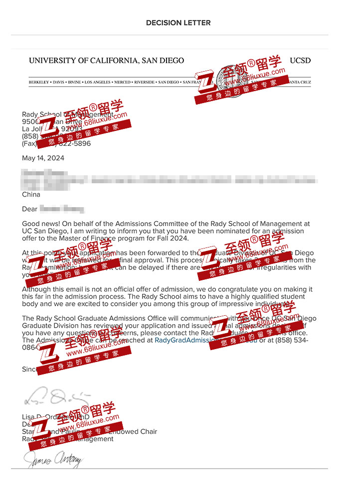录取结果:University of California San Diego,Master of Finance 加州大学圣地亚哥分校金融硕士录取