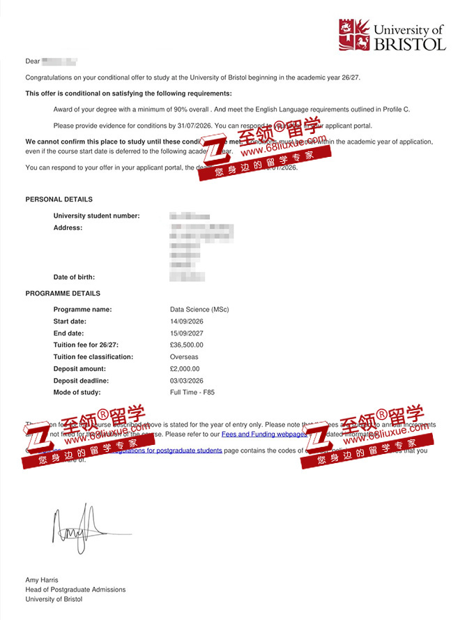 录取结果:布里斯托大学数据科学硕士录取