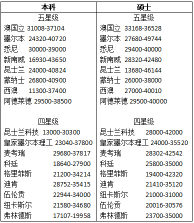 为了方便大家选择,在查看各大学官网后整理出了最新学费情况,大致范围如下:(单位均为澳元) <