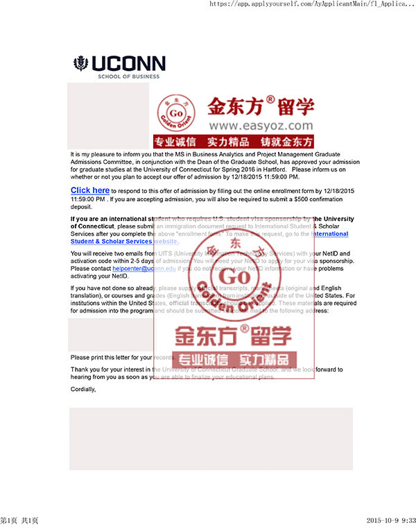 录取结果:康涅狄格大学(UCONN)(全美排名57) 商业分析与项目管理