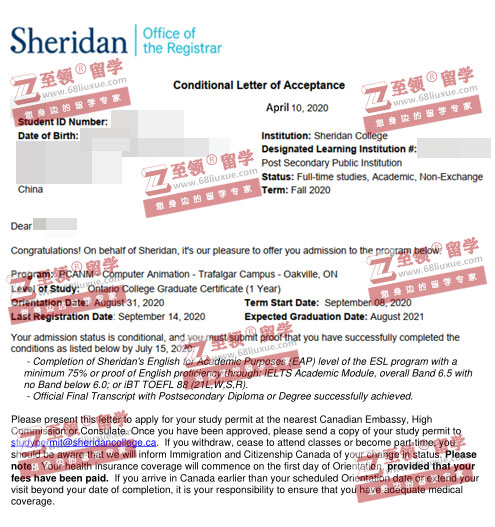 录取结果:Sheridan college,Ontario College Graduate Certificate in Computer Animation谢尔丹学院计算机动画研究生录取