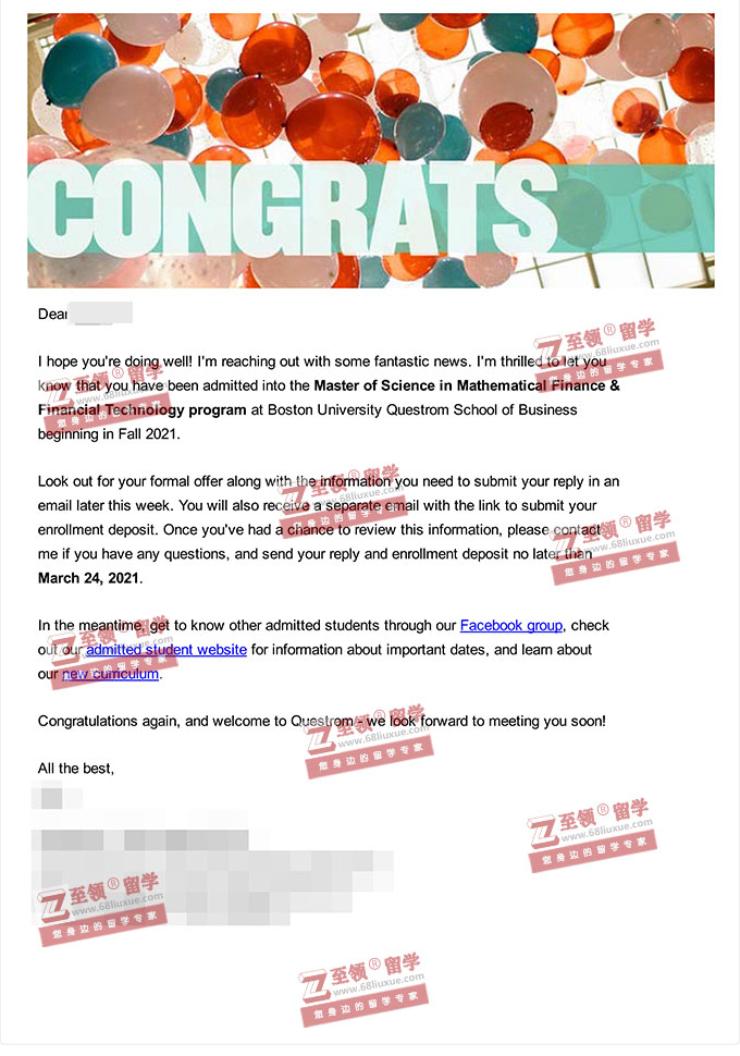 录取结果:BU,Master of Science in Mathematical Finance & Financial Technology波士顿大学金融数学硕士录取