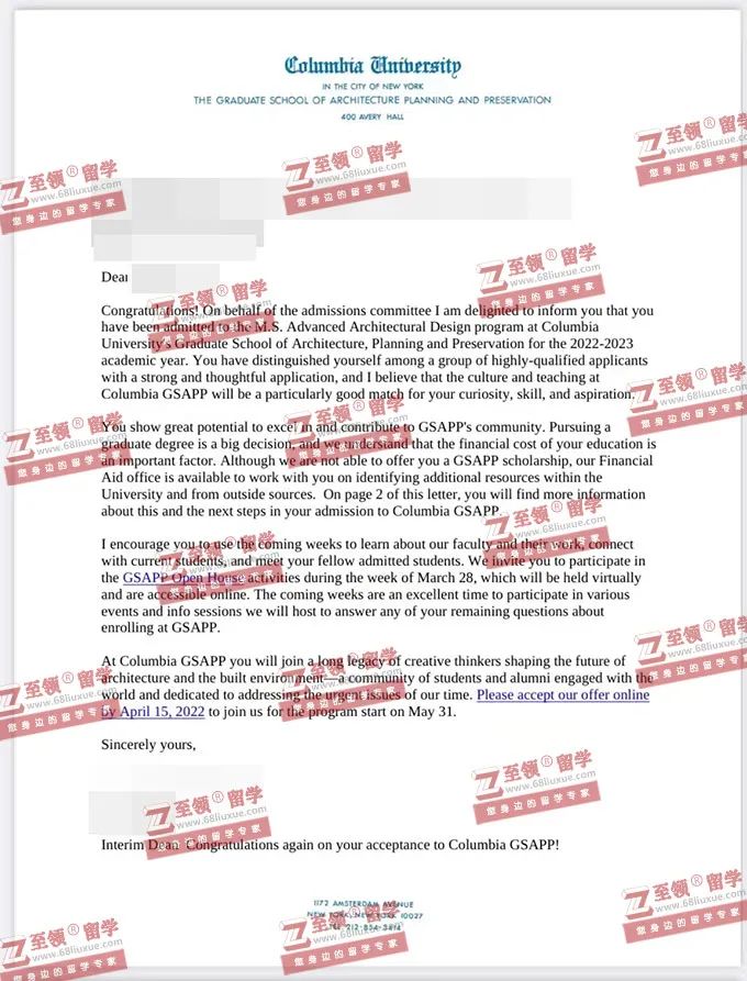 录取结果:Columbia University, M.S. ADVANCED ARCHITECTURAL DESIGN哥伦比亚大学建筑设计硕士录取