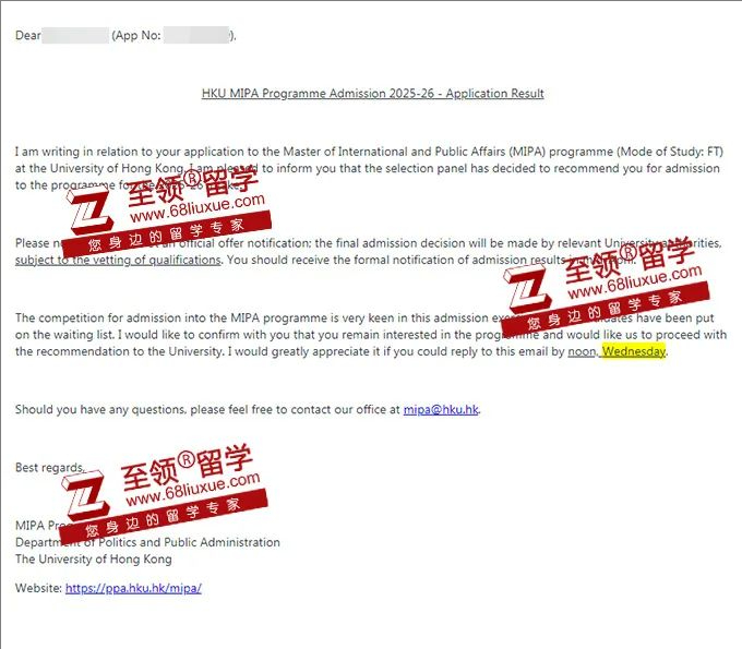 在至领留学团队帮助下,G同学拿到多所美国名校OFFER,今日又收获港大国际关系与公共事务硕士录取。
