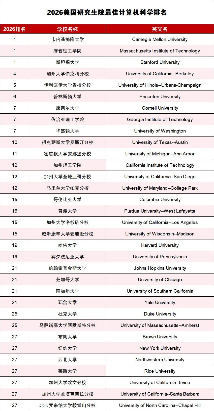 卡内基梅隆大学(CMU)、麻省理工学院(MIT)、斯坦福大学并列第1。
