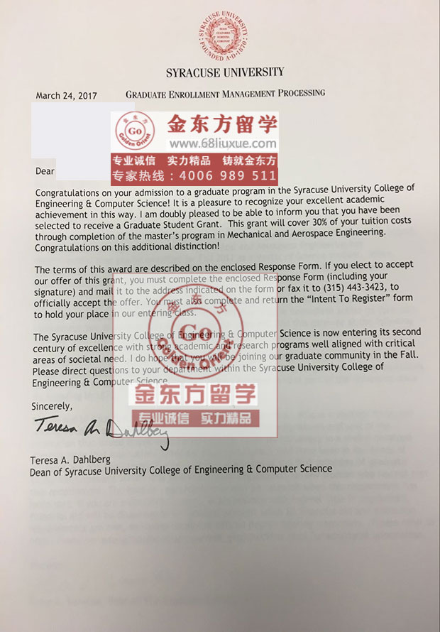 录取结果:Syracuse University(雪城大学),Master of Science in Mechanical and Aerospace Engineering (机械与航空航天工程硕士)
